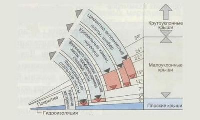 Рассмотрим, как влияет примененный материал на градус наклона кровли: