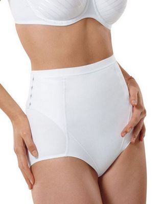 - Плотные бандаж-трусы с застежками сбоку и снизу помогают втянуться животу и скорректировать фигуру.