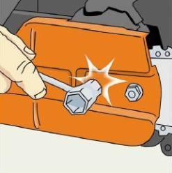 Важно! Производите операцию по натяжению цепи, когда она холодная и никогда не регулируйте теплую или горячую цепь! При чрезмерном натяжении, когда цепь охладиться и еще сожмется, она может вызвать серьезные проблемы с пильной шиной и гарнитурой. Поэтому даже следует чуть-чуть ослабить цепь перед началом работы, например, во время измороси.