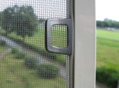Стандартная москитная сетка выглядит как рамка из алюминиевого профиля, на которую натянут специальный материал – противомоскитное полотно. Для того чтобы это полотно не раздражало глаза, оно окрашено в серый цвет. А алюминиевый профиль окрашивается под цвет окна. Хоть предназначение сетки в защите от вредных насекомых, она выполняет еще одну немаловажную функцию: частично предотвращает попадание в помещение пыли с улицы и полностью защищает от листьев и тополиного пуха. Последнее, кстати, особенно актуально для аллергиков. Кроме того, установив такую сетку на пластиковое окно можно быть полностью уверенным, что пернатые питомцы никуда не денутся с подоконника. Еще одним плюсом установки сетки на окно еще является ее нетребовательность в уходе. О ней можно вспоминать только пару раз в год, весной и осенью промывать теплой водой.
