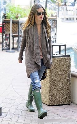 - Теплые вязаные кардиганы . независимо от модели, фасона и длины рукава, на удивление хорошо сочетаются с резиновыми сапогами до колена или чуть ниже.