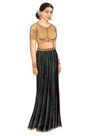 Как завязать сари – инструкция к применению:- Чтобы повязать сари этим способом, помимо полотна вам потребуется нижняя юбка и блузка (топ). Нижнюю юбку следует подбирать тон в тон к цвету сари, а вот топ может отличаться. Юбка на резинке не очень удобна, так как под весом драпировки резинка растягивается. Гораздо надежнее крепить юбку на талии с помощью ленты. Топ может быть самым разным – коротким, длинным, с вырезами или без, с рукавами и без них. Подберите белье, которое не будет проступать под нижней юбкой и топом, наденьте их.