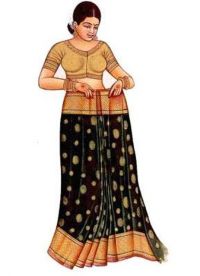 В других способах драпировки сари может отличаться наличие и расположение складок, а также размещение свободного края – иногда его перебрасывают со спины на грудь, через правое плечо (гуджаратский стиль), а иногда пропускают вперед между ногами и заправляют за пояс (штат Махараштра).