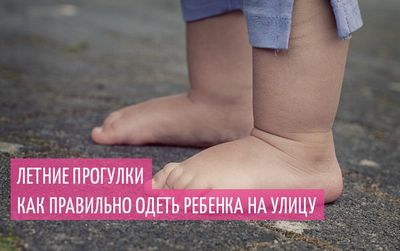 Летом, одевая ребенка на прогулку, очень важно не перестараться. Ведь если ребенок одет теплее, чем нужно, то скорее всего он вспотеет за время прогулки, а затем любой прохладный ветерок может привести к простуде. Немножко подмерзнуть летом не так страшно, как перегреться. И, кроме того, если вы боитесь, что ребенок замерзнет #8212; вы можете взять с собой кофточку, которую можно одеть на ребенка, когда он действительно замерзнет.