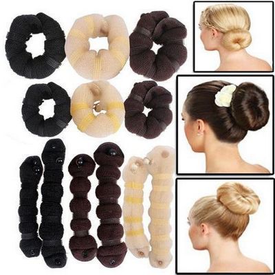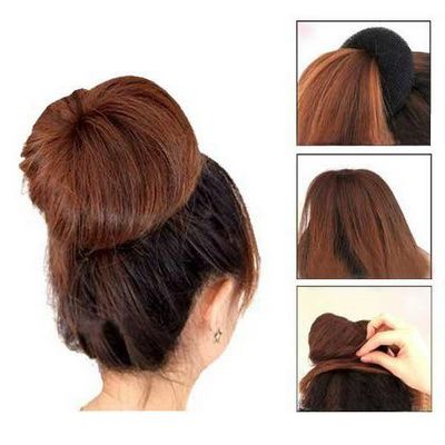 Внешне валик больше похож на пончик, он сделан из тонкой нейлоновой сетки или поролона, поэтому совсем не утяжеляет прическу. С помощью него можно сделать как элегантные строгие шишки, так и небрежные пучки.