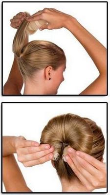 1) Расчесываем волосы и завязываем на затылке хвост, натягиваем бублик на основание хвоста;