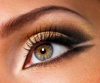 - Золотой. Этот волшебный оттенок может сделать глаза искрящимися. Но относитесь к нему с осторожностью. Если золота на веках слишком много, то взгляд потухнет. Не стоит использовать этот тон, если ваша кожа усталая, увядающая – золотой безжалостно подчеркнет все морщинки.