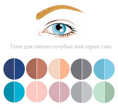 - Для серых и голубых глаз можно использовать сочетания серебристого и серо-бежевого, нежно-розового и тёплого коричневого, золотого и бронзового цветов. Придать радужке еще большей насыщенности поможет макияж в теплом сочетании цвета шампанского с рыжеватым оттенком;