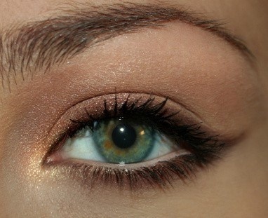 Для создания эффекта смоки и завершения образа хорошо растушуйте границу между разными оттенками. Зеленоглазым красавицам больше всего подойдёт тёмно-коричневая подводка. Чёрная может оказаться слишком резкой. Для особого случая отлично подойдёт подводка золотого или бронзового оттенка. К подводке подбирайте соответствующую коричнево-чёрную тушь.