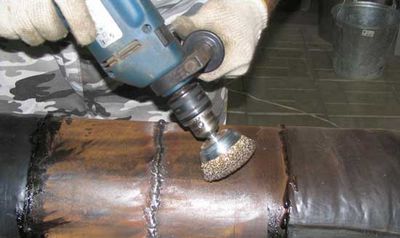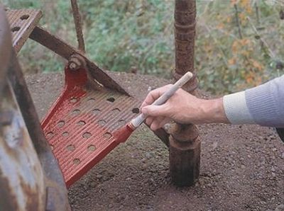 Очистка поверхности от окислов металла (ржавчины), жировых остатков и возможных старых лакокрасочных покрытий производится с помощью специальных растворителей и металлических щеток или электрических шлифовальных машинок с соответствующими насадками.