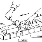 Некоторые опытные строители заранее накладывают небольшое количество связующей смеси на боковую грань кирпича для скрепления с соседним.