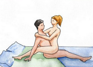 Для следующего варианта наверняка пригодится урок, потому что поза достаточно сложна, требует определенного опыта для получения удовольствия. Мужчина должен сидеть с прямой спиной, выбрав опорой подушку либо спинку кровати, женщине следует прижаться к бедрам, выгнуть спину, использовать опору отставленными назад руками. Двигаться в таком положении достаточно сложно, поэтому оба партнера должны помогать друг другу.