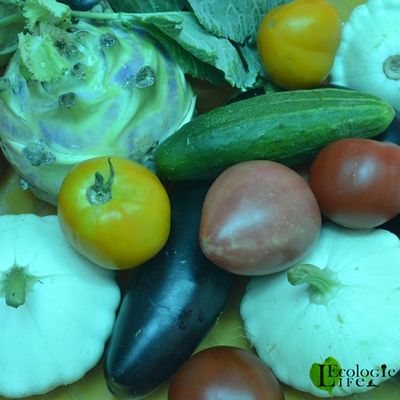 Вот мой ежедневный «улов»: помидоры, патиссоны, кабачки, баклажаны, кольраби – всё прямо с грядки.