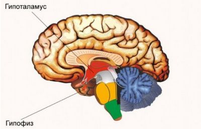 - нарушения в гипотоламусе и опухолях близлежащих отделов головного мозга;