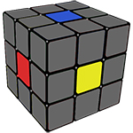 Теперь Вы можете увидеть на Вашем Кубике, что остались несобранными только углы – угловые кубики. Проверьте – если эти четыре кубика на своих местах, пусть неправильно ориентированы, то следующую формулу выполнять не надо. На рисунке черным цветом отмечен кубик, стоящий на своем месте – правильно или неправильно. Если таких кубиков ни одного, то выбирайте фронт какой угодно.