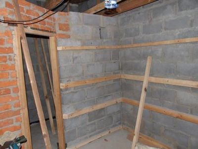 - Если в вашем распоряжении стена без отделки, то вам понадобятся бруски с большей толщиной и прочностью. Это необходимо для выдерживания веса досок.