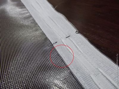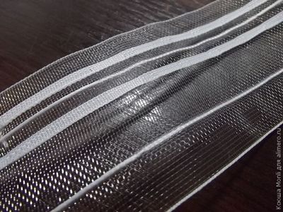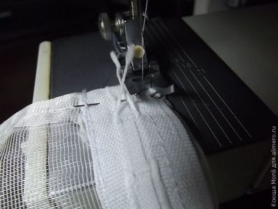 Теперь осталось закрепить соединительным швом другой край ленты (на изнанке тюля с правой стороны).