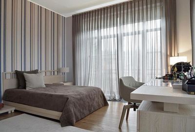 - Если повесить на окно однотонный тюль на несколько тонов светлее, чем полотно штор, можно получить классический вариант декора, который одинаково хорош как в гостиной, так и в спальне.
