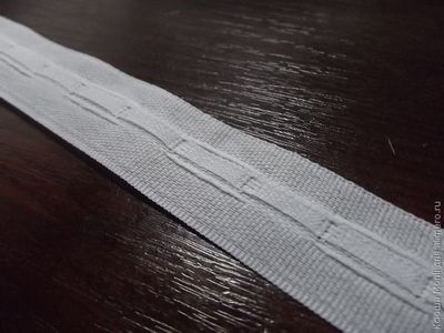 Белого цвета плотная лента чаще всего используется для пришивания к шторам. Но бывает так, что правила эти нарушаются по желанию заказчика. Так случилось и в этот раз — соседка не знала, какую ленту нужно покупать и купила, не посоветовавшись, то, что ей понравилось. Так, сегодня я покажу вам пример пришивания плотной шторной ленты на прозрачный тюль.