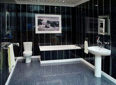 Хорошей альтернативой керамической плитке для покрытия стен в ванной являются пластиковые панели. Это довольно дешёвый материал с самой разнообразной расцветкой поверхности. Качество пластиковых панелей на столько высоко, что порой трудно определить чем покрыты стены в ванной.