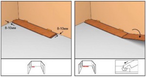 Правильно постелить ламинат – это только полдела. После настила приступают к установке плинтусов. Смонтированный пол называется “плавающим”, так как он не закреплен жестко на основании. Такая конструкция инертна к изменениям температуры, если она находится в свободном состоянии. Поэтому при установке плинтусы крепят на стену таким образом, чтобы они прилегали к панелям, а не прижимали их.