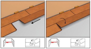 Методы без использования клея («замковые» и «сборные») отличаются простотой и длительностью службы ламината. Они позволяют сократить время ремонта и придать надежности конструкции, исключив образование зазоров. По завершению сборки, покрытие можно использовать по назначению сразу же.