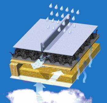 - Супердиффузионная мембрана имеет паропроницаемость свыше 1000 г/м² в сутки. Их можно использовать в качестве ветро- и гидроизоляции в верхнем слое «кровельного пирога», как для металлической кровли или кровли из профнастила, так и для кровли из битумных гонтов. Супердиффузионные мембраны имеют трехслойную структуру и не пропускают воздух совсем, только – влагу. Они лишены недостатков обычных диффузионных мембран, поэтому их можно использовать и в условиях низких температур, и в условиях высокой запыленности.