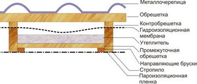 - потом набивается контробрешетка, а на нее уже кладется отделка.