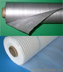 Первыми рассмотрим пленки из полипропилена, которые не пропускают пар. Этот вид пароизоляции для крыши применяется чаще всего. Речь не о простом полиэтилене, а о специальных армированных полимерных пленках. Их изготовление отличается методом внедрения стекловолоконных нитей в структуру материала, чтобы он был прочным: