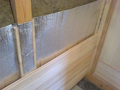 Важно обеспечить вентиляционный зазор между слоем пароизоляции и чистовой облицовкой. Делается это для того чтобы, во-первых, избежать впитывания возможного конденсата в вагонку, а во-вторых – для того чтобы более эффективно обеспечить теплоотражение. Чтобы создать такой промежуток, к балкам поверх паробарьера крепится обрешётка, на которую впоследствии крепится вагонка.