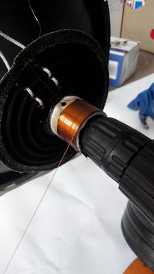 Итак катушка намотана, осталось ее приклеить к динамику, а это тоже очень точный процесс, тк надо сделать так что бы катушка не терла в дифузоре.