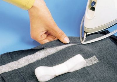 Если штора, произведена из тонкого материала, подшив, осуществляют с помощью ленты, на фото. Специальная клеевая лента вкладывается на место перегиба материи и проглаживается теплым утюгом. Отметим, что при помощи ленты, можно аккуратно подшить занавес даже той хозяйке, которая не имеет опыта в швейном деле.
