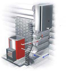 - Дымоход обязательно должен быть, но куда будет он направлен это неважно. Может, через чердак или специально сооруженную комнату, но стоит подумать о безопасности и ликвидировать горючие вещества.