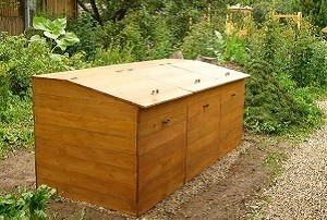Следующий способ устройства компостера заключается в обустройстве специального ящика. сбитого из досок. Между досками необходимо оставить щели для естественного притока воздуха и оттока излишней влаги. Ящик может быть одно-, двух- или трехсекционным.