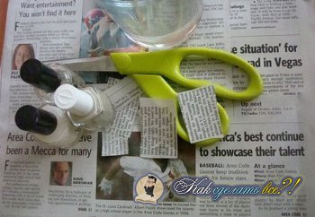 2. Вырезаем из газеты десять одинаковых по размеру кусочков с текстом. Каждый листик должен быть больше ногтя.