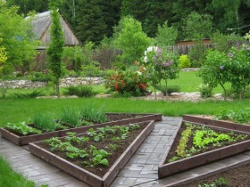 Если уж совсем неровный участок, то грядки располагают на его южном склоне, а садовые растения – на северном.