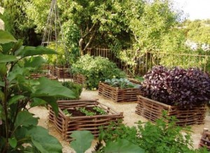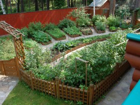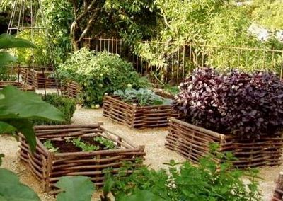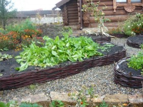 - Можно украсить грядки по периметру плетёным забором. Это всегда смотрится оригинально.