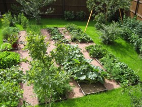 - Дорожки между грядками можно выложить камнем, плиткой. Можно и травкой газонной засеять. Будет и красиво, и удобно.
