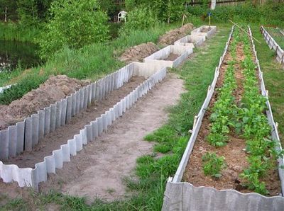 Грядки на даче можно обустроить и из шифера. Если вы меняли крышу, то, наверняка, найдутся листы старого шифера. Грядки получаются очень красивые. Минус у шифера только один #8212; в жаркую солнечную погоду он достаточно сильно нагревается, тем самым провоцирует испарение влаги из почвы. Решить эту проблему можно, делая большие грядки, из них влага будет испаряться гораздо меньше.