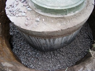 - Первое кольцо устанавливается на дренирующую подсыпку из щебня, валунов или кирпичного боя толщиной не менее 30 см.