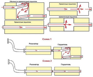 Для того, чтобы сделать спортивный глушитель своими руками, необходимо внести небольшие изменения в конструкцию глушителя. Резонатор трогать не стоит, так как он не оказывает решающего влияния, и сам по себе является частично прямоточным. Глушитель внутри устроен, как система лабиринтов, которая окончательно гасит инерцию газа, создавая определённое давление в выхлопной трубе и значительно подавляя низкочастотные звуковые колебания.