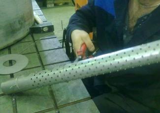 - внутри корпуса вход и выход соединяются отрезком трубы соответствующего диаметра, в стенках которой выполнены отверстия или прорези в виде решета;