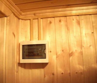 - В сауне устанавливается дополнительный щиток, который будет обеспечить контроль электроприборов непосредственно в этом помещении. Питание к нему протягивается от основного. Монтаж проводки можно делать двумя способами: воздушным или подземным. Второй является наиболее безопасным и эстетичным, в то время, как первый – гораздо проще и быстрее;