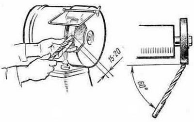 Сверла самого малого диаметра допускается точить вручную при помощи плоского напильника.