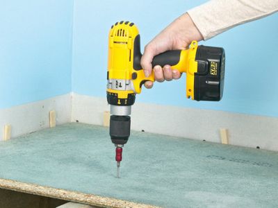 Плиты крепятся к полу при помощи саморезов и дюбелей. Каждый саморез необходимо затягивать руками до того момента, когда его шляпка уйдет под поверхность ДСП. Затем места крепления замазываются шпатлевкой и шлифуются.