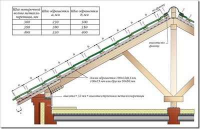 Предусмотреть требуется свисание листа над основанием кровли. Математические расчеты получаются несложные: высота и ширина ската. Листы нарезаются по заказанным размерам. Застройщики или строительные бригады получают черепицу по заранее приготовленному чертежу.