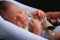 - Везти грудного ребенка в автомобиле без использования специальных для этого приспособлений категорически недопустимо. Даже если кроху укутать в пуховое одеяло, то это не снизит вероятности его выпадения из рук матери при резком торможении. Как известно, у новорожденных детей еще совсем не сформирована мышечная и костная системы, поэтому резкое торможение может привести к опрокидыванию головки, а, значит, к травме. Чтобы исключить вероятность возникновения непредвиденной ситуации, необходимо ребенка разместить в специальном автомобильном приспособлении. Лишь в некоторых случаях допускается перевозка грудных детей в автомобиле на руках мамы. Только при этом стоит соблюдать следующие моменты: