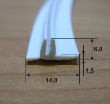 Так выглядит пластиковый профиль с зафиксированным гарпуном и без маскировочной ленты в разрезе