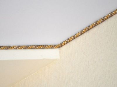 - Лента гораздо уже потолочного плинтуса. Даже при выборе контрастного цвета она уменьшит видимую площадь потолка весьма незначительно. А ведь именно по площади пола и потолка человеческое зрение оценивает размер помещения.