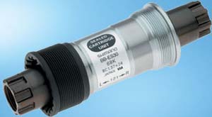 Картридж каретки позволяет избежать этих проблем: подшипники находятся в жестком корпусе, который вворачивается в велосипедную раму. Это исключает перекос подшипников и необходимость регулировать каретку. В картридже можно удобно разместить качественное уплотнение вала. Крое того, подшипники будут защищены от ржавчины, которая может осыпаться с внутренней стороны труб рамы. Большинство картриджей неразборные, но есть и разборные, например, недорогие картриджи Shimano. Желательно выбирать картриджи с хромированным внешним покрытием (например, Shimano Deore LX и выше) и обильно смазывать во избежание прикипания к раме.